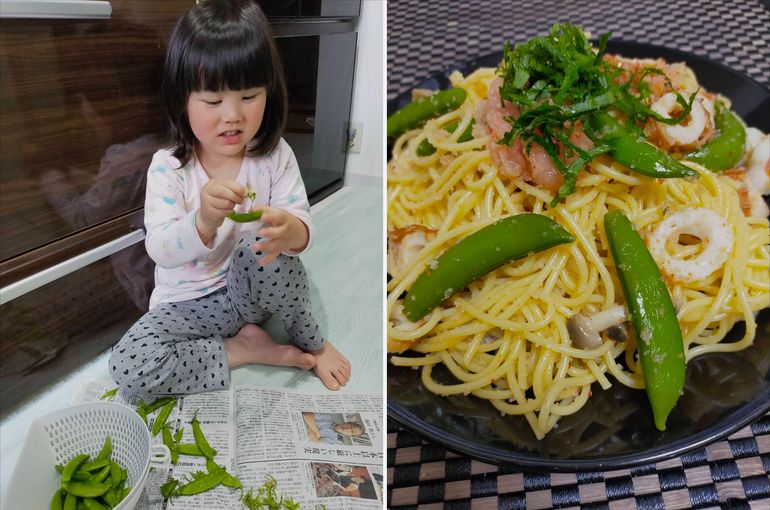 収穫→筋取り→調理まで、とっても良い食育ができました😀