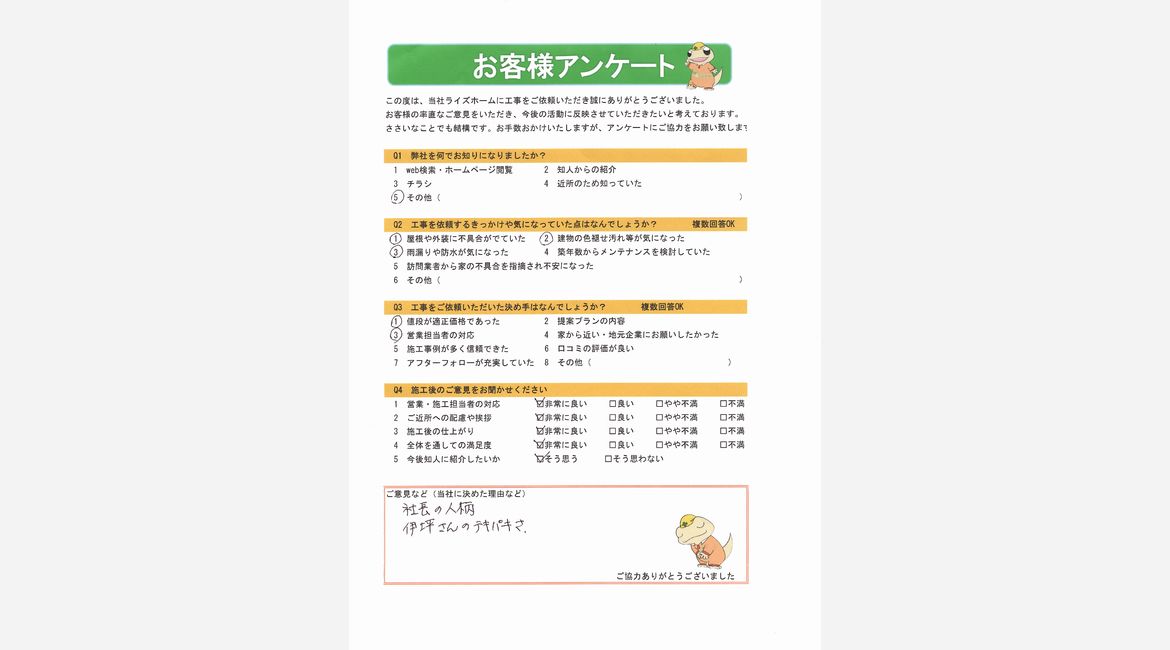 施工の満足度・代表の人柄・営業担当者の対応についても、高く評価いただきありがとうございます✨