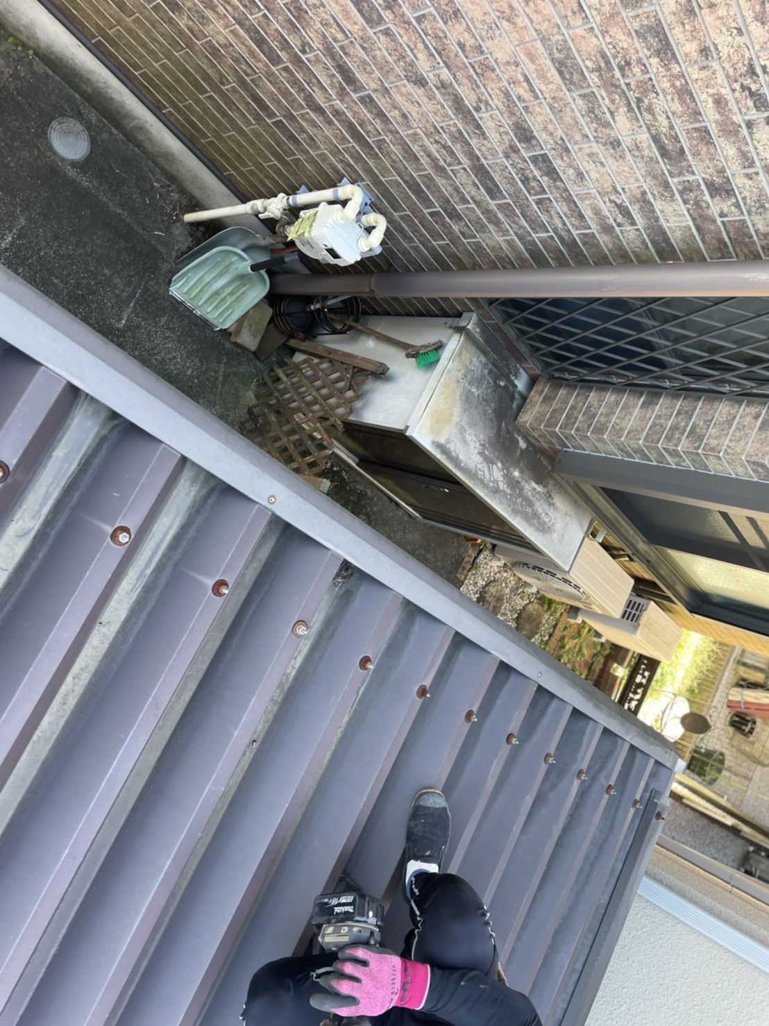 カーポート上の板金製雨樋が破損し、弊社ホームページよりお問い合わせいただきました。