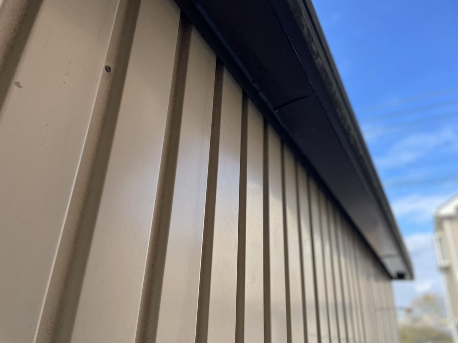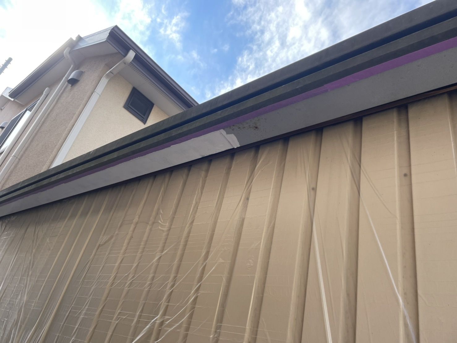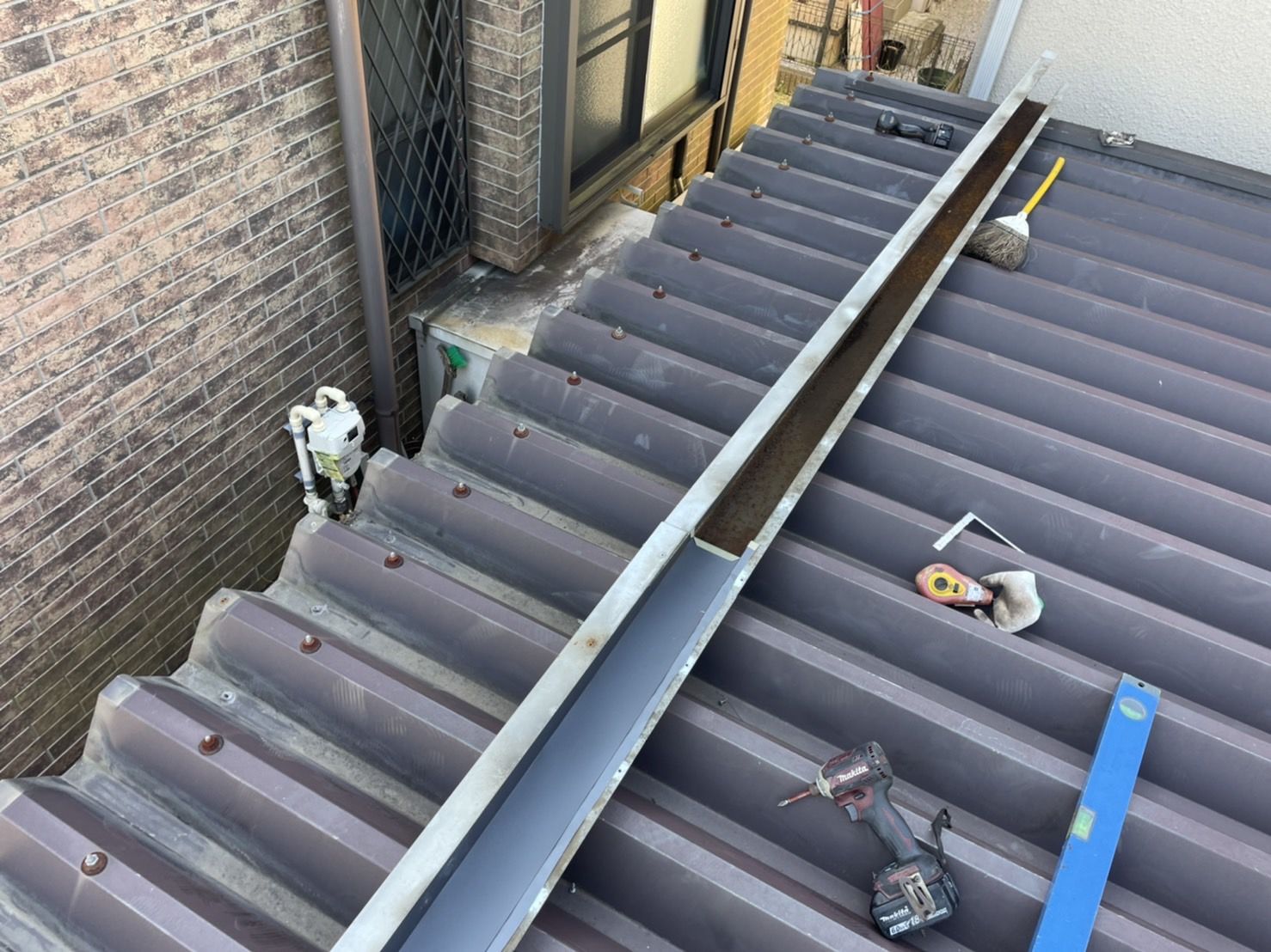 改修方法といたしまして、既存の板金雨樋の内側に新たに板金雨樋を設置させていただき、腐食部分の板金を補修の上、塗装をさせていただきました。