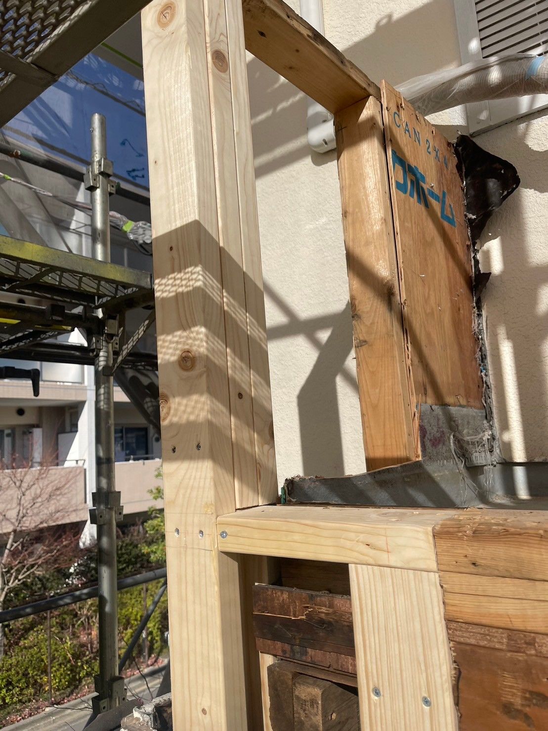既存の木製のベランダが傷んで危険だったため屋根外壁リフォーム工事と併せて、傷む心配のないサイディングを使用したベランダへのリフォームをご提案させていただきました。