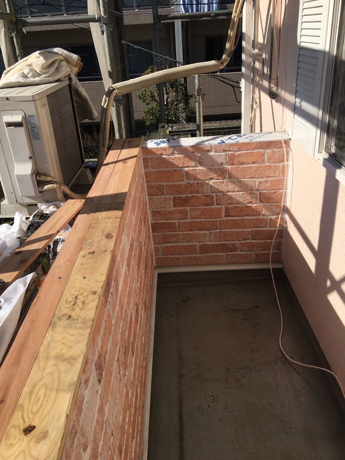 レンガ調の窯業系サイディングが外壁のアクセントとなり素敵な仕上がりとなりました✨手すりは既存のものを再利用したとは思えないくらい新しいベランダにマッチしております😊木の劣化が見られ危険だったベランダは、今回のリフォームにより美しい見た目だけでなく安全性も確保。また既存の手すりを再利用したことで地球にも優しいリフォームとなりました✨