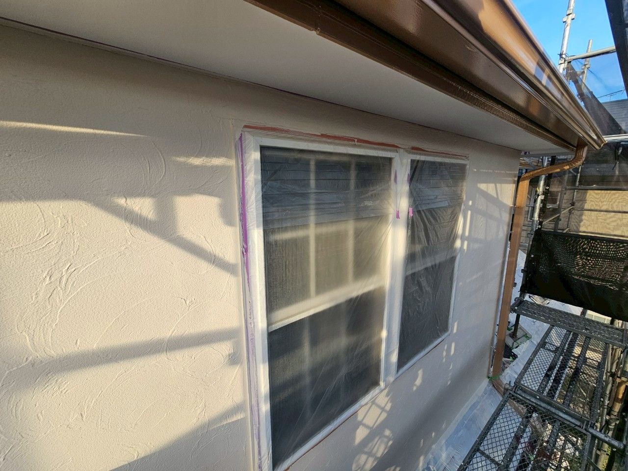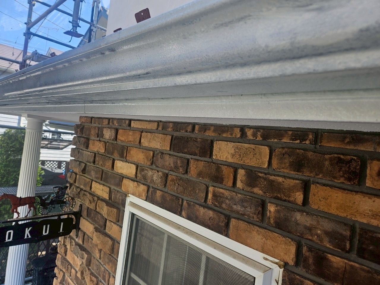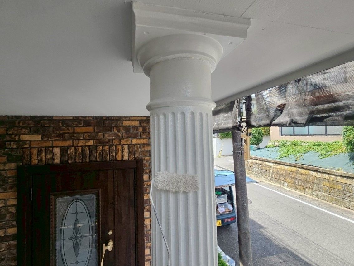 付帯部の色を深みのあるバーガンディーから明るいベージュに変更し、既存のレンガ部分にマッチした明るい印象の仕上がりとなりました🏠✨
