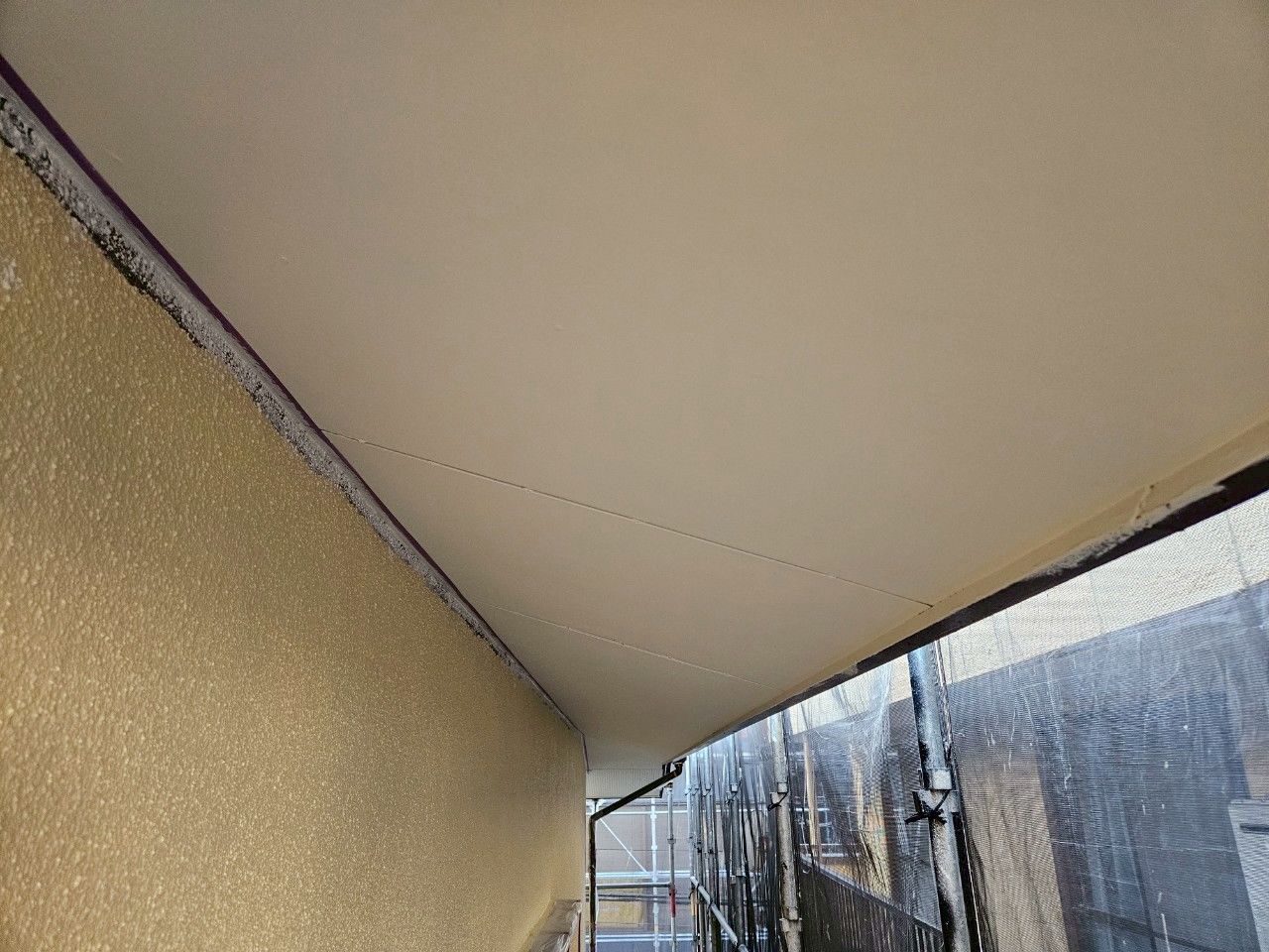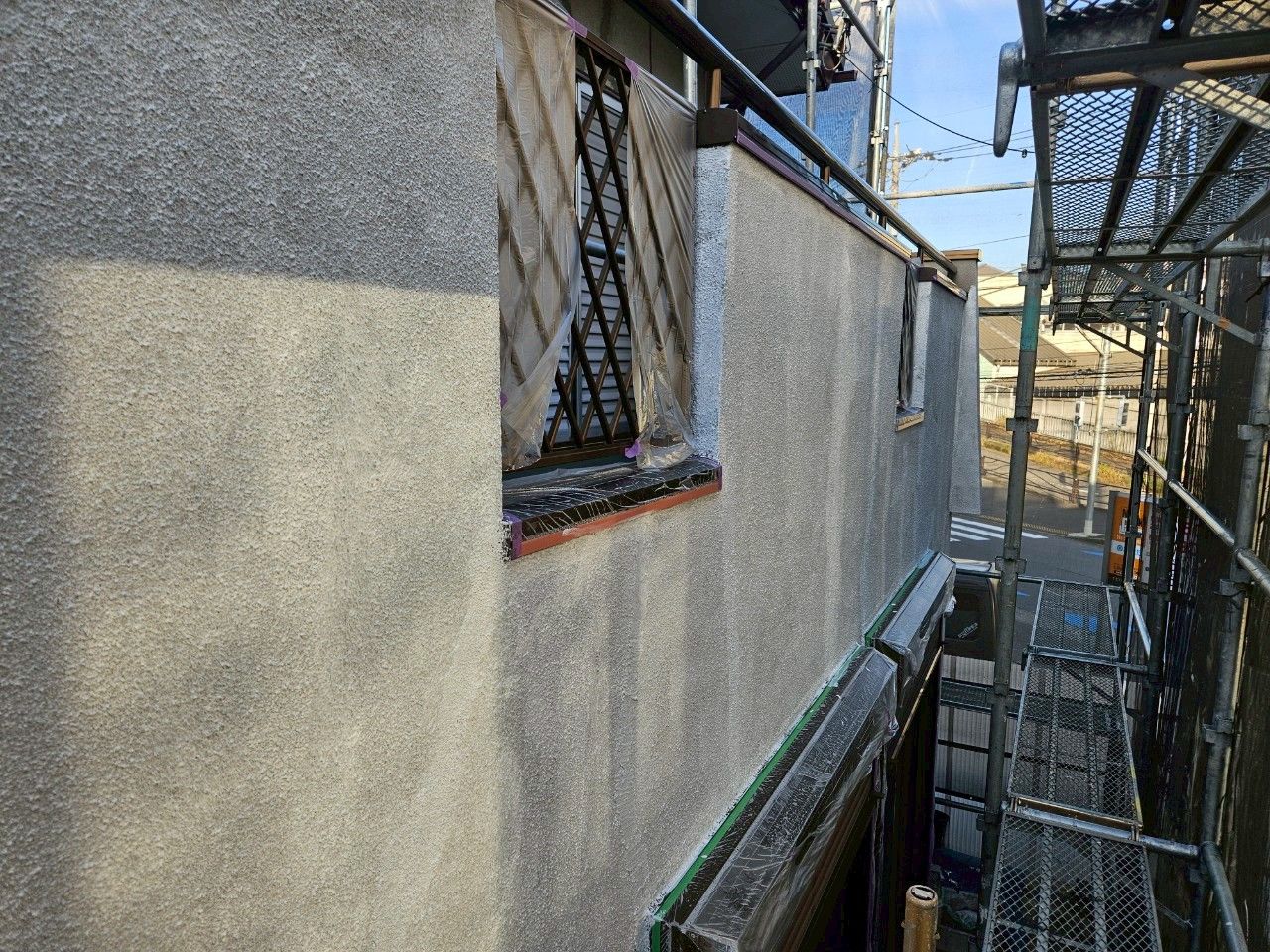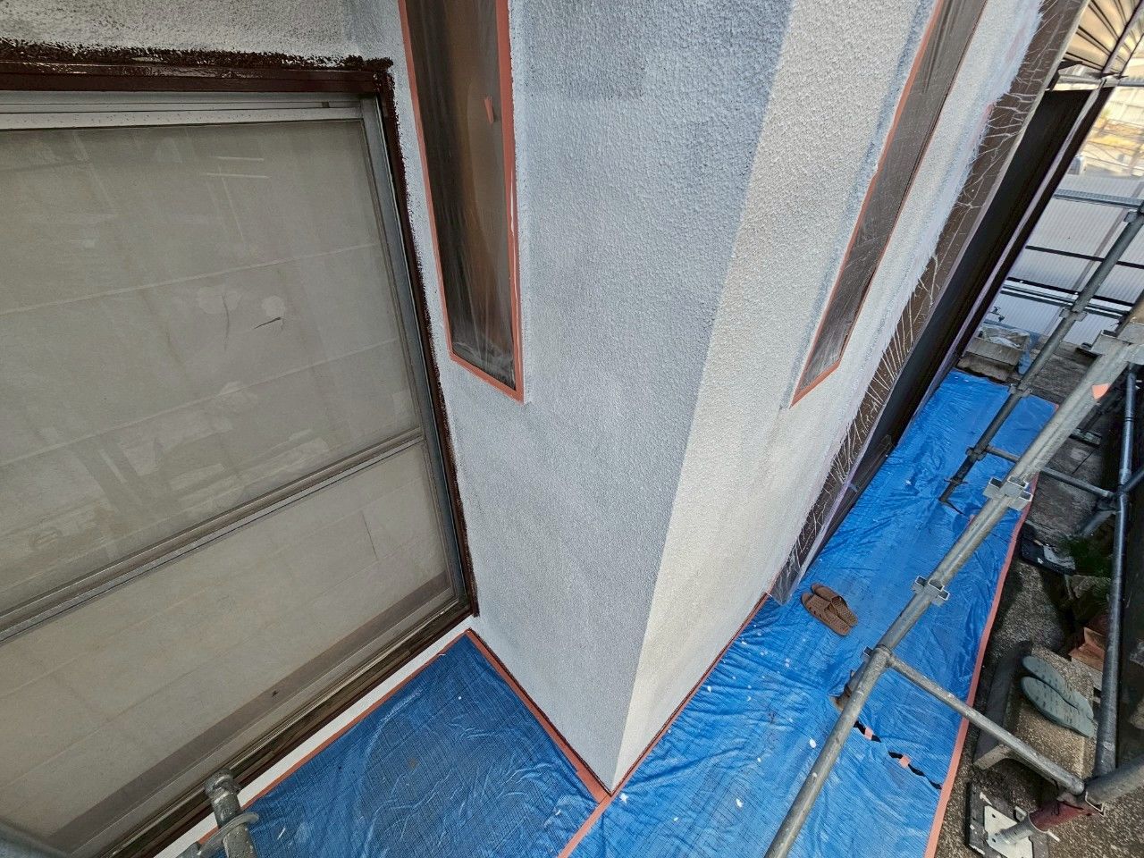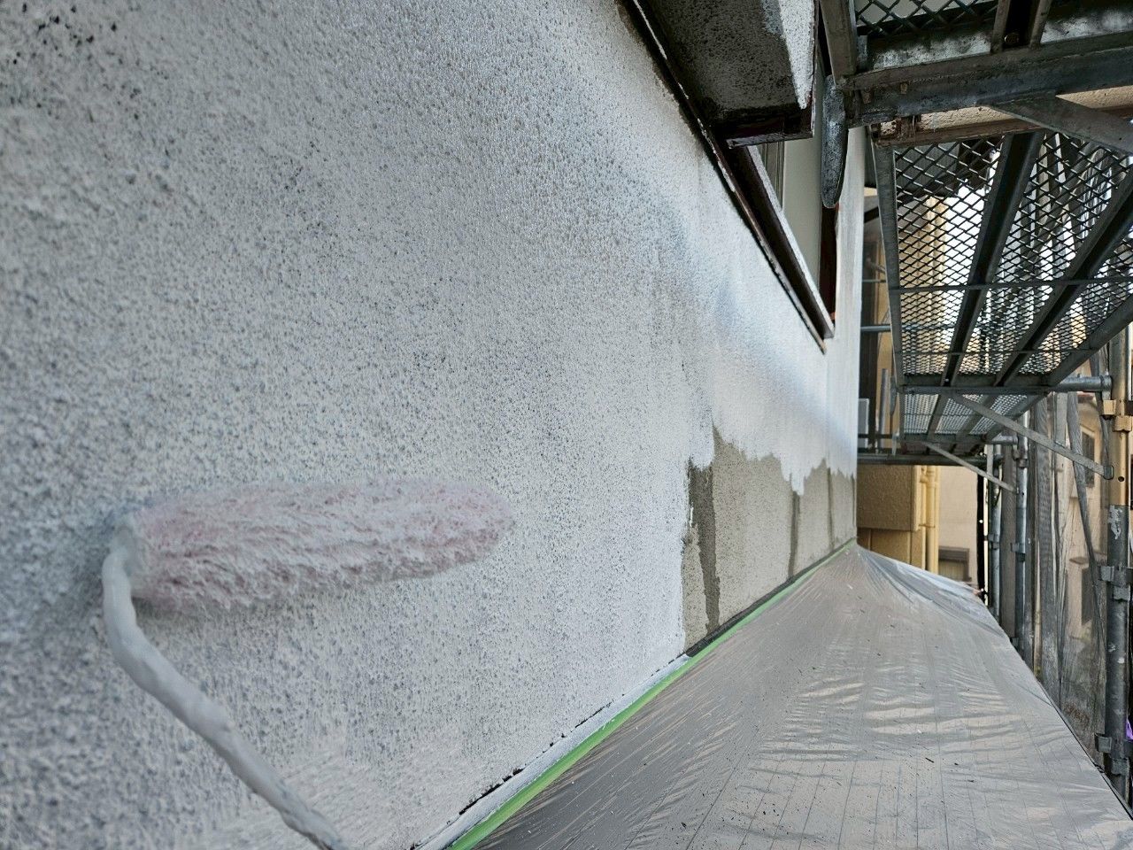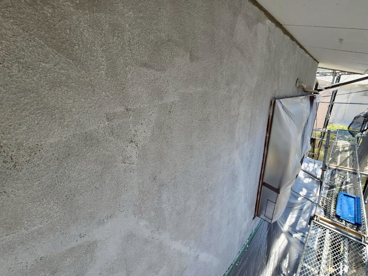 下地の凹凸を滑らかにするフィラータイプの下塗り材を使用しました