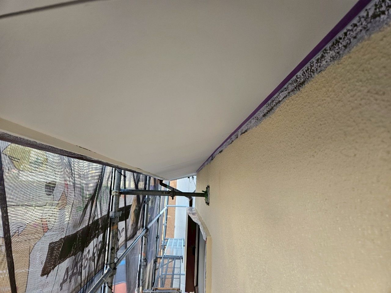 クラック(ひび割れ)・クラックの補修跡がかなり目立っていましたので、下塗り材に下地の凹凸を滑らかにするフィラータイプの下塗り材を使用しました。