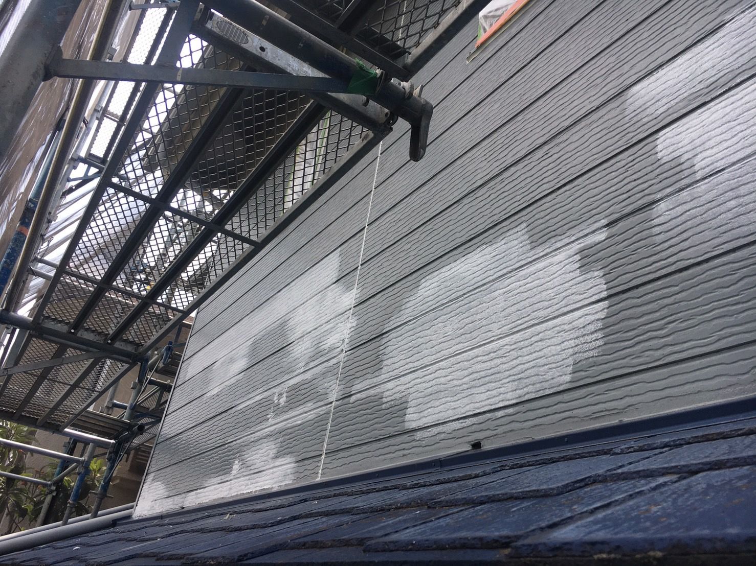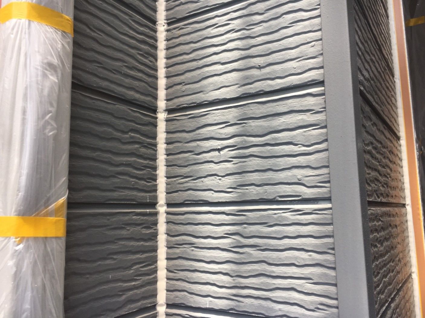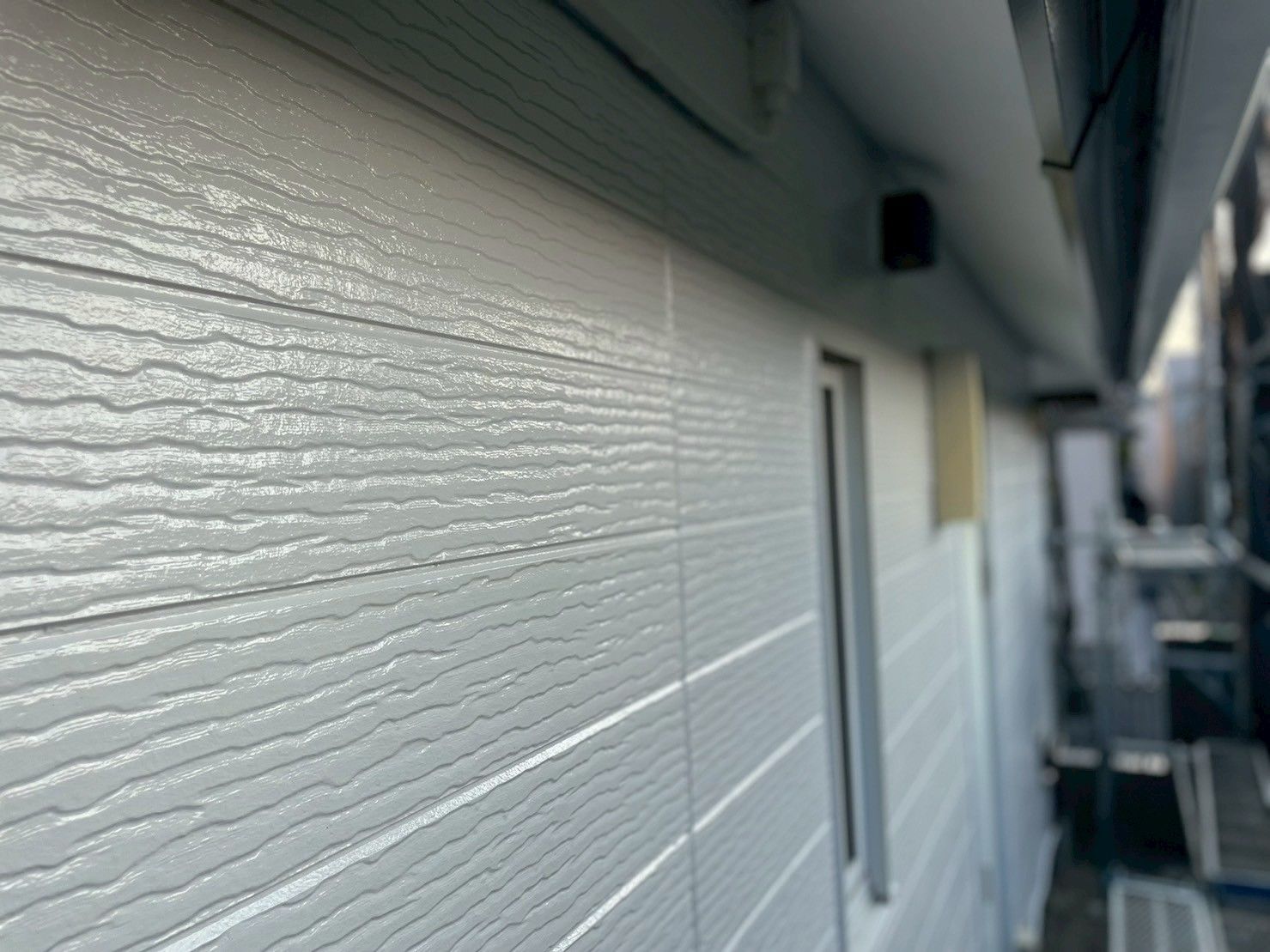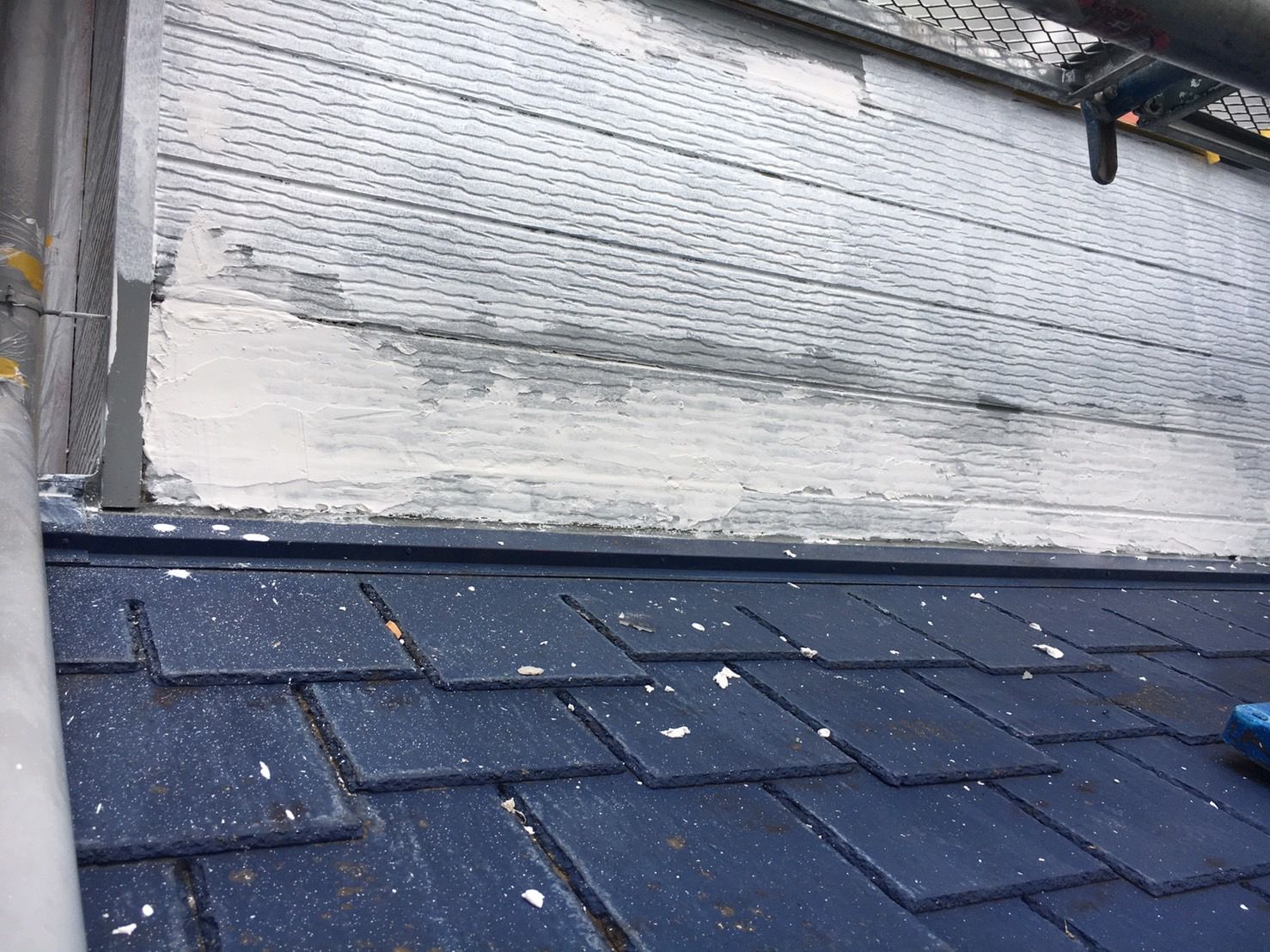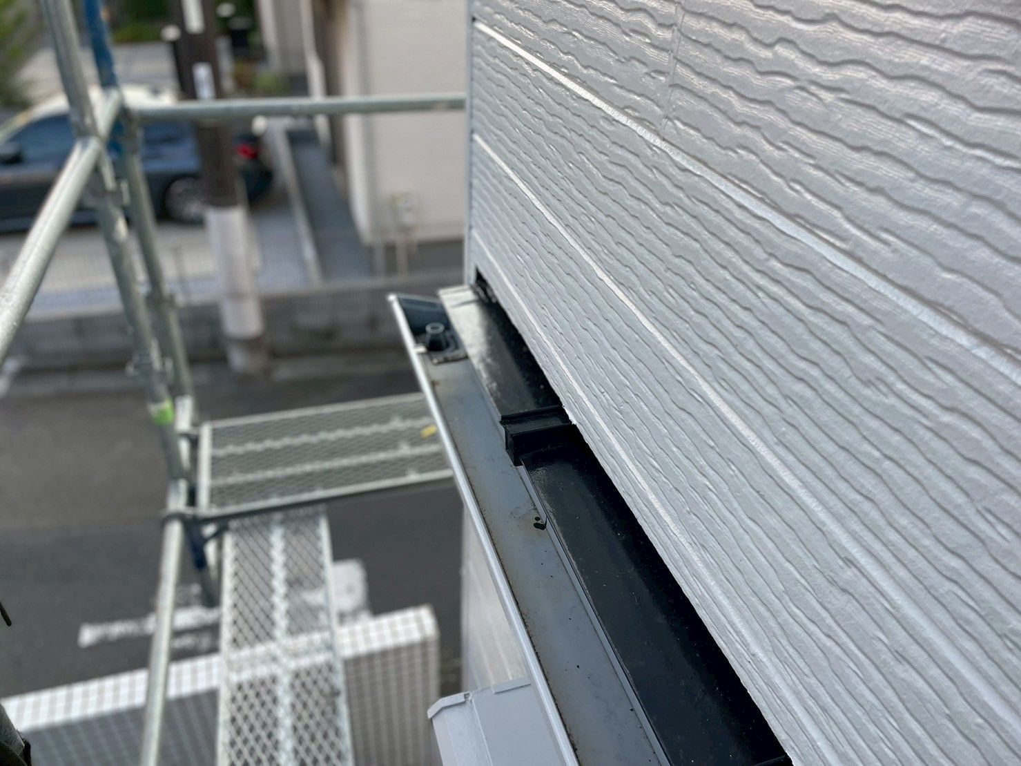 この度の工事では、仕上げに塗料の持ちをよくするトップコートを塗布することを考慮し、コーキングも耐候性の高い「SRシールH100」を使用し耐用年数を揃えました。