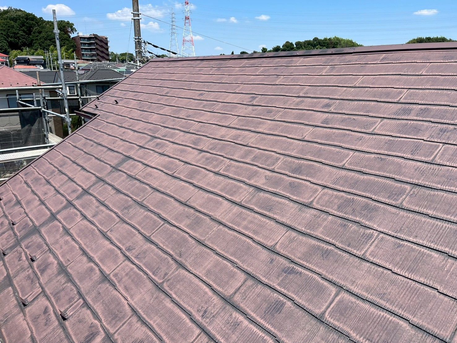 外壁塗装も合わせてご検討されており、決められた予算内で出来る工事をとのご要望でした。現地調査の結果、屋根材の状態に問題ございませんでしたので、屋根も塗装でご提案させていただきました。