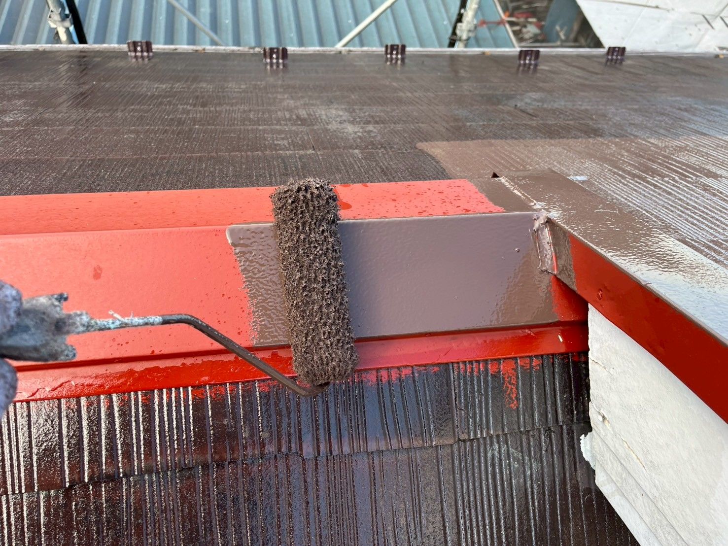 ケラバ唐草・棟板金サビ止め塗布