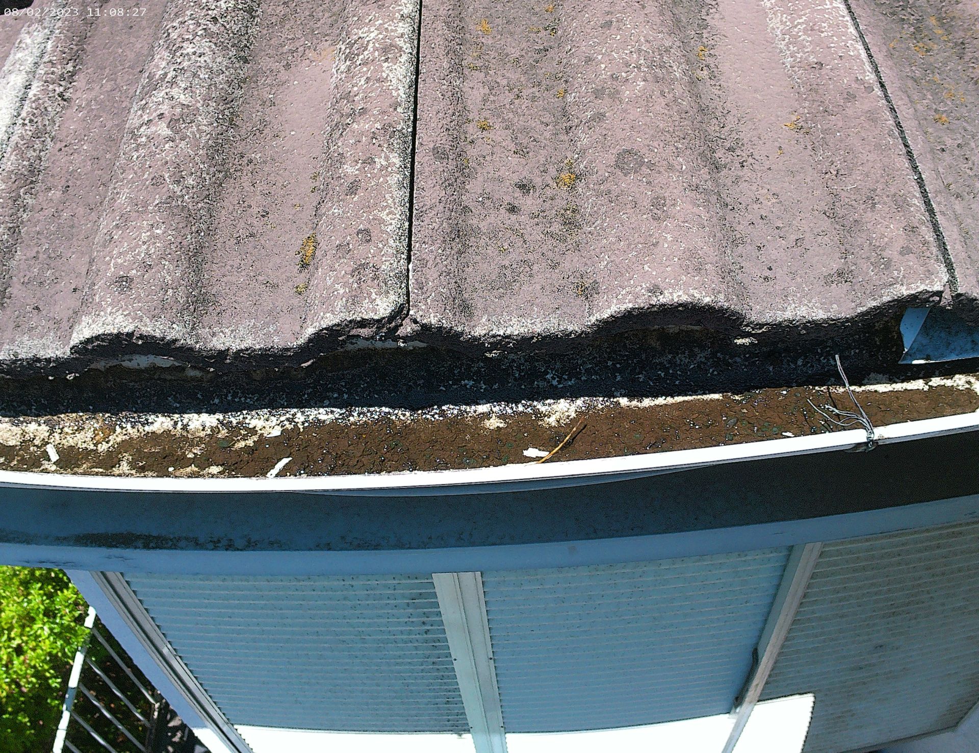 5年前に下屋根雨樋の土をご自身で掃除しましたが、漆喰の土や風にのって土がたまっている状態でした。
