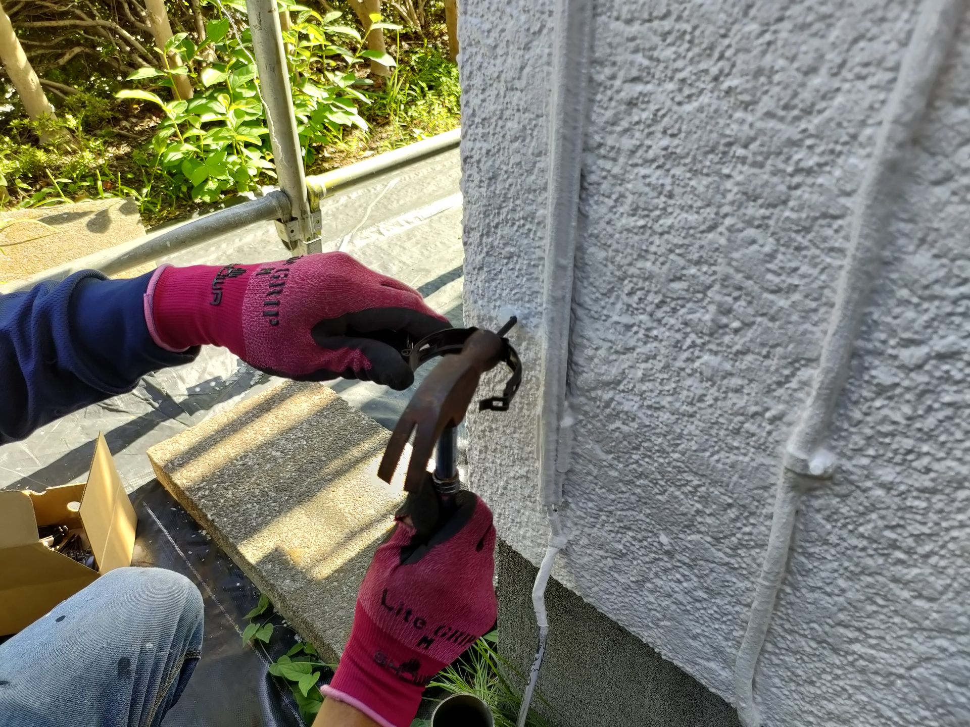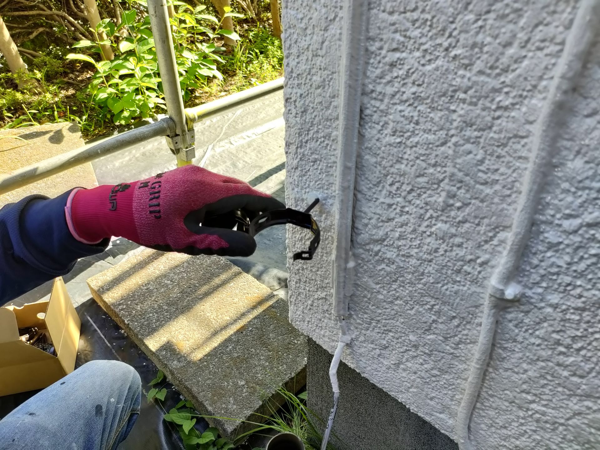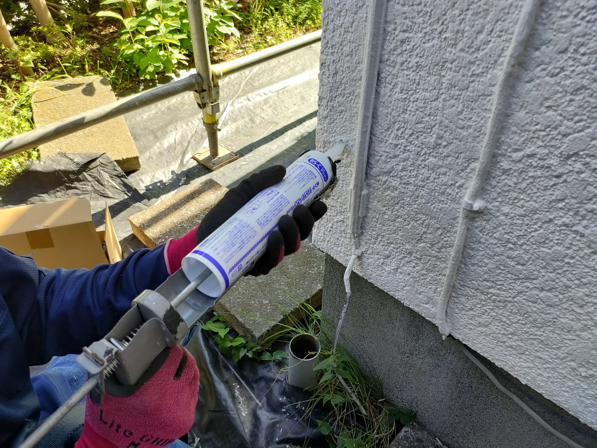 外壁から抜いた部位にシーリングたっぷり詰めます。