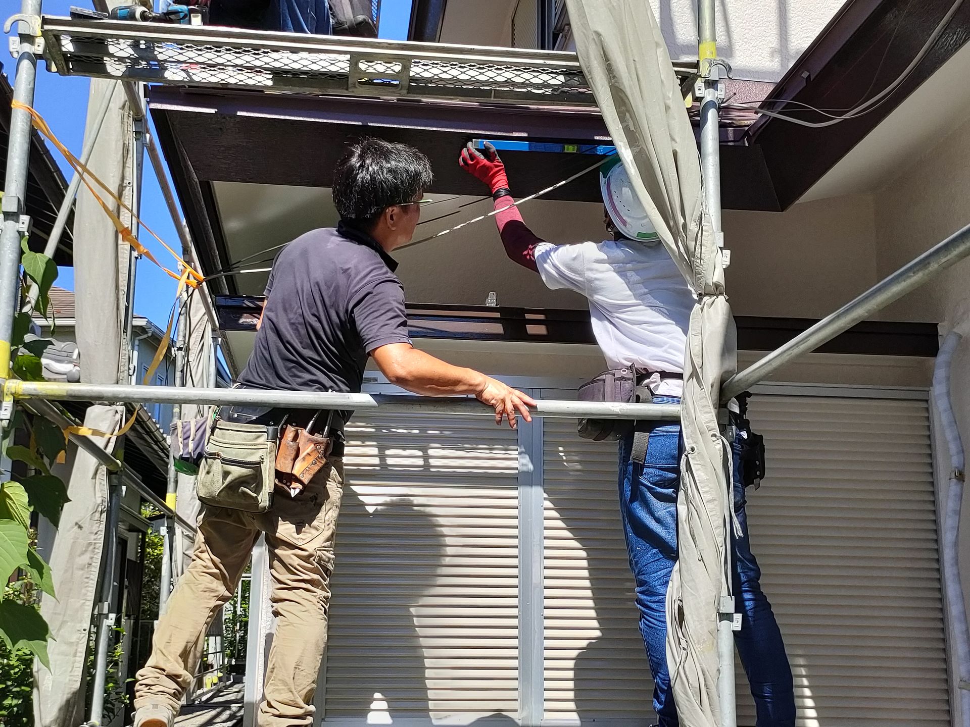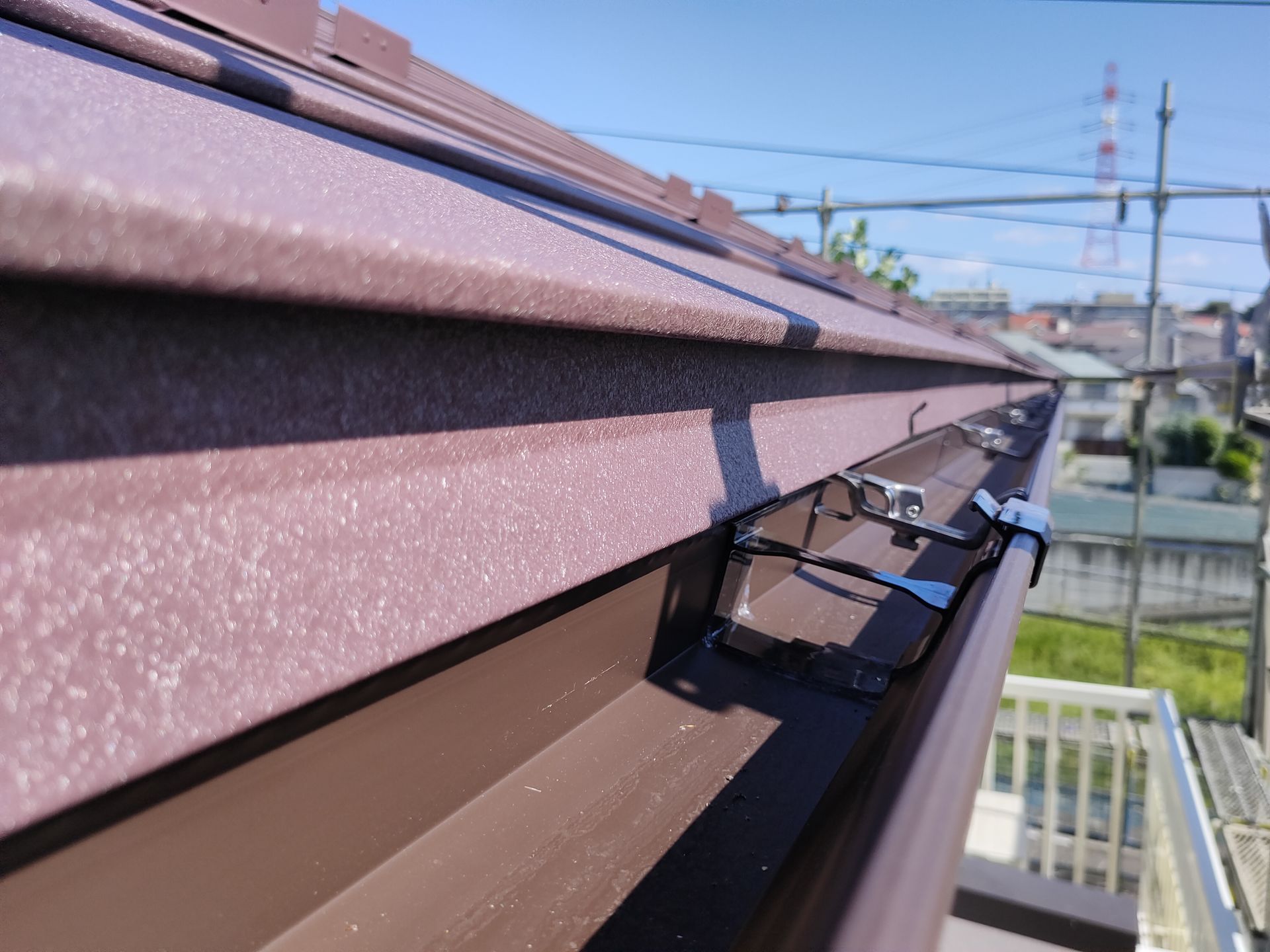 ①瓦屋根→スーパーガルテクトへの葺き替え ②雨樋交換 ③破風板金 ④軒天交換 ⑤外壁塗装と大規模なリフォームを行いました。