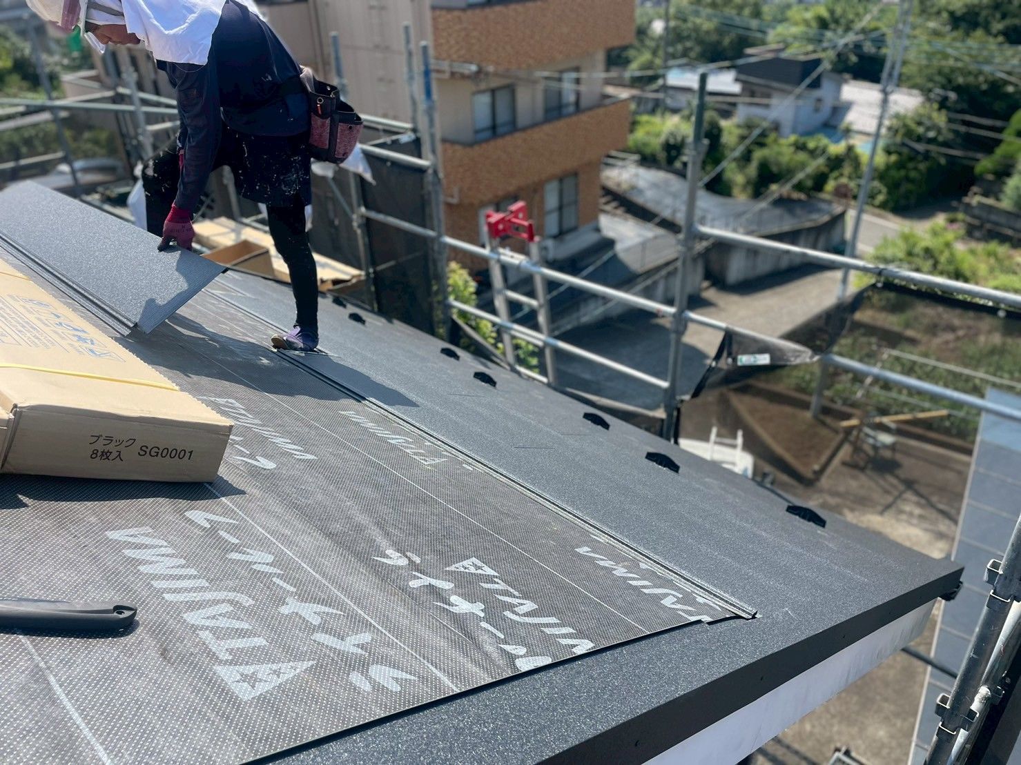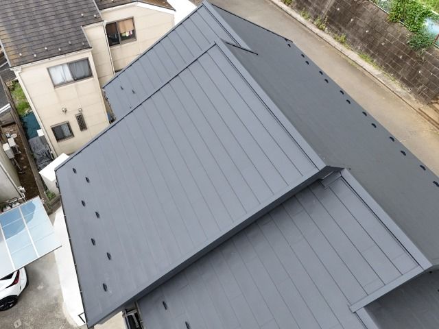 川崎市麻生区 スレートからスカイメタルルーフへ 屋根カバー工事 ジンカリウム鋼板
