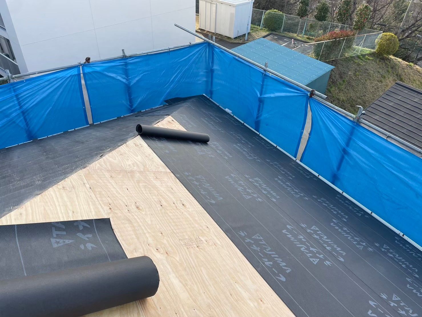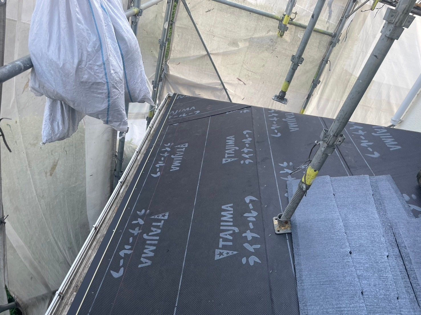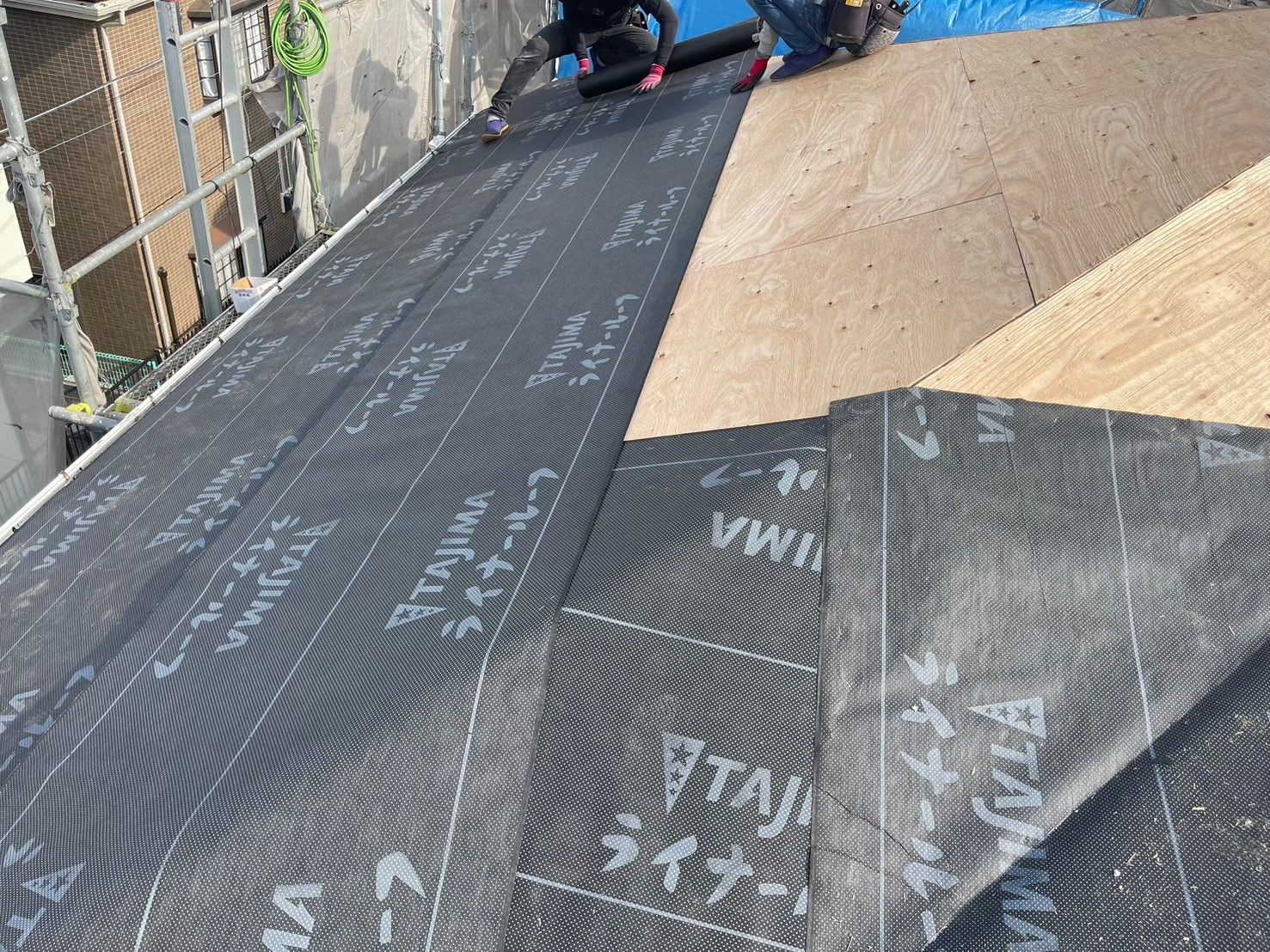 弊社では屋根の耐用年数にあわせ改質アスファルトの最高峰30年の高耐久「ニューライナールーフィング」を使用しております