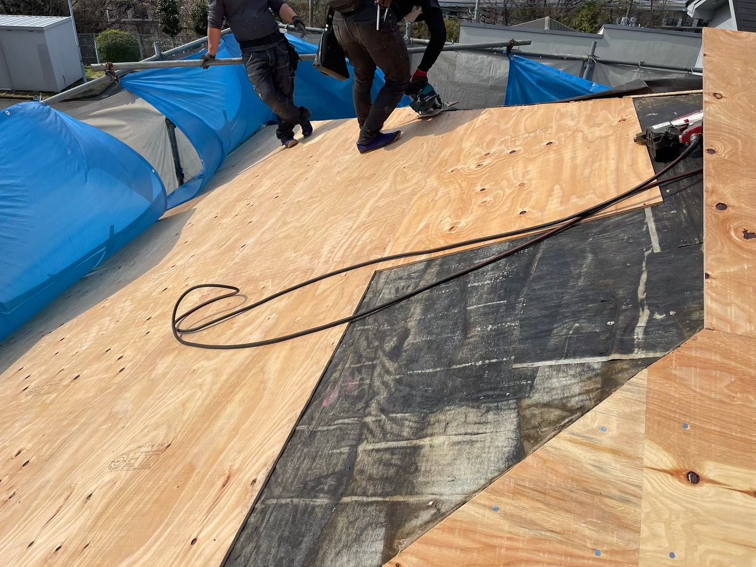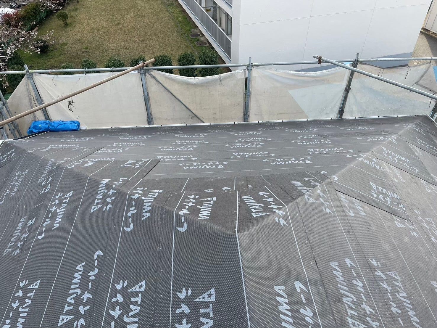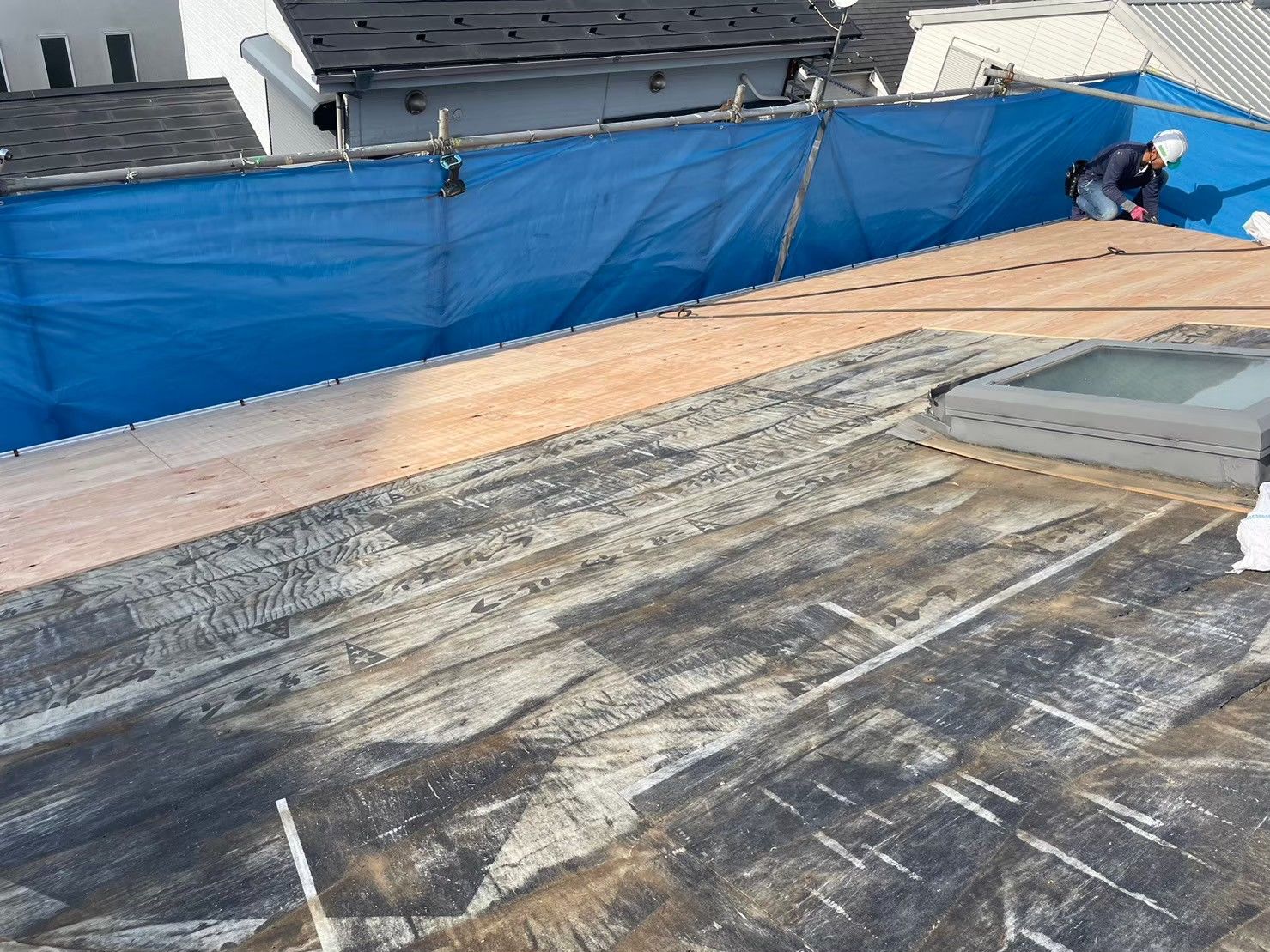 弊社では屋根の耐用年数にあわせ改質アスファルトの最高峰30年の高耐久「ニューライナールーフィング」を使用しております