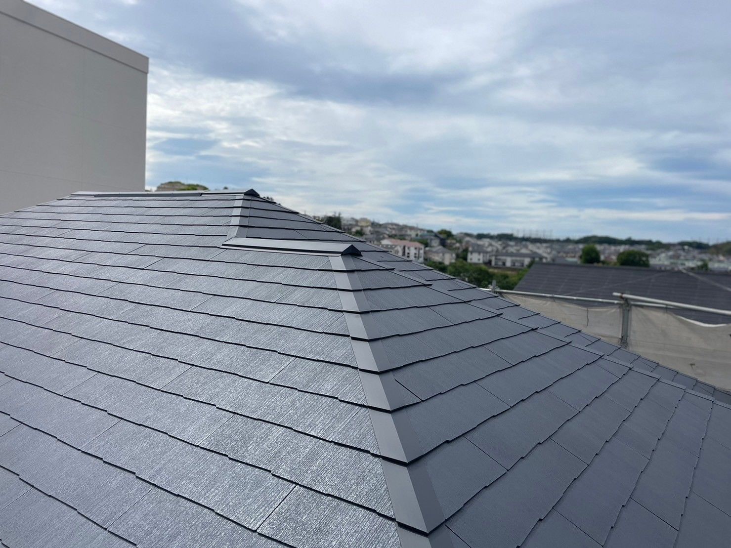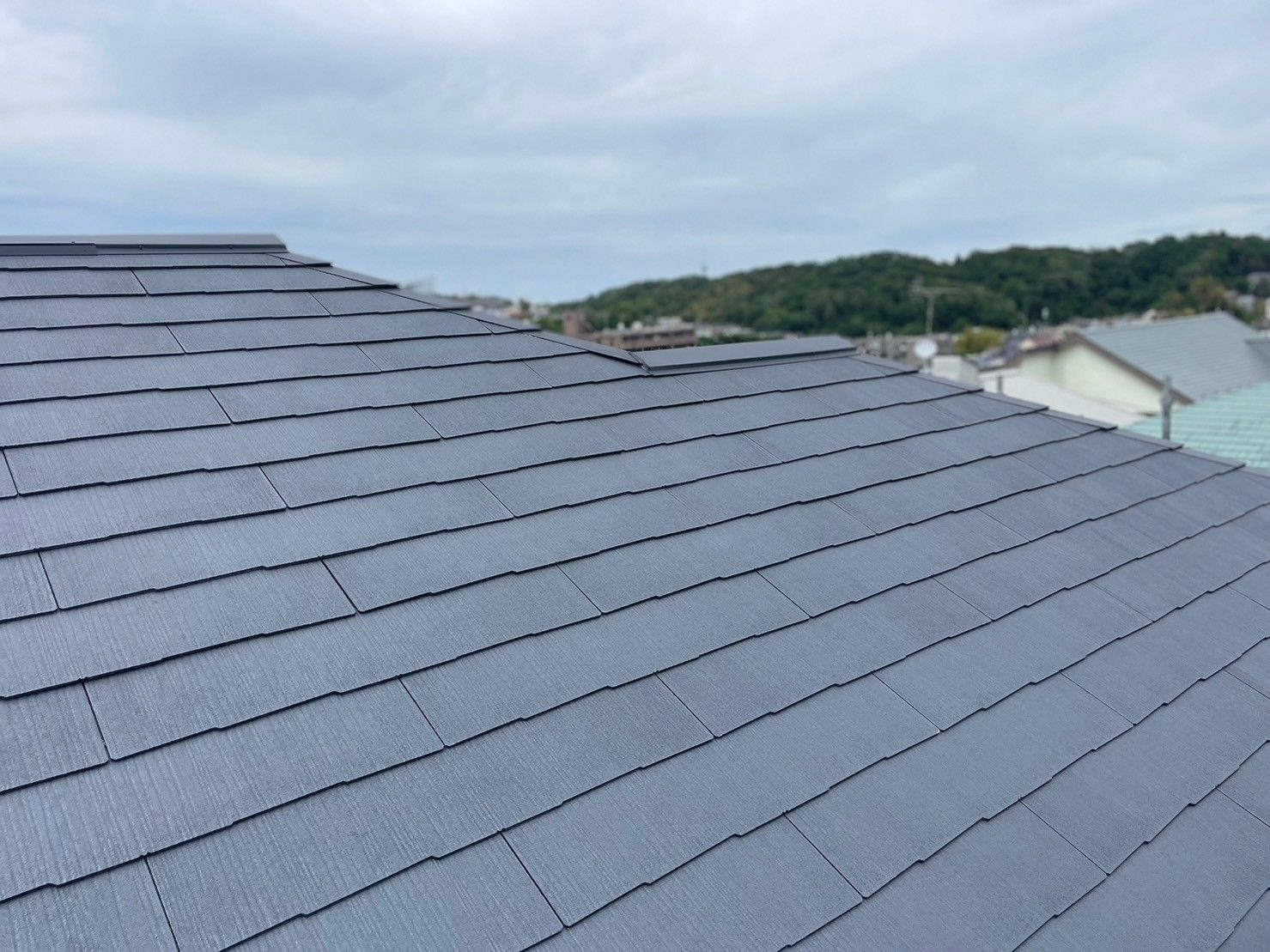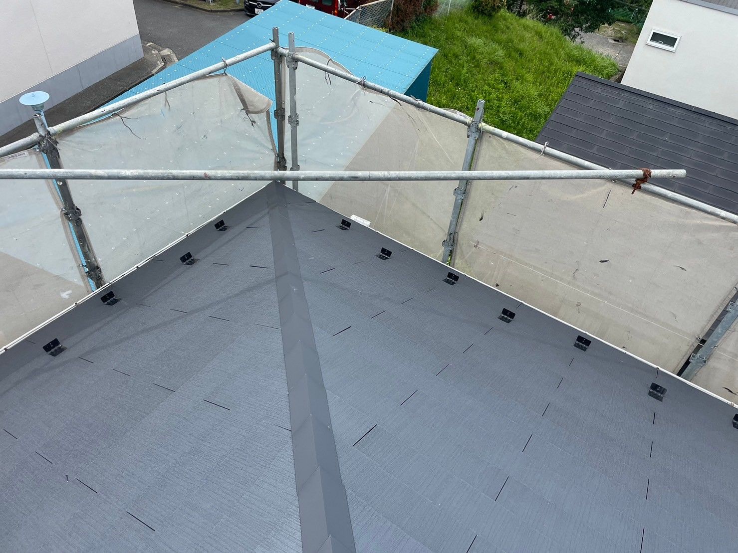 スーパーガルテクトのカバー工法と最後まで比較ご検討されておりましたが、最終的にコロニアルグラッサに葺き替えることで気になっていた雨音も軽減されご納得の仕上がりとなりました😊