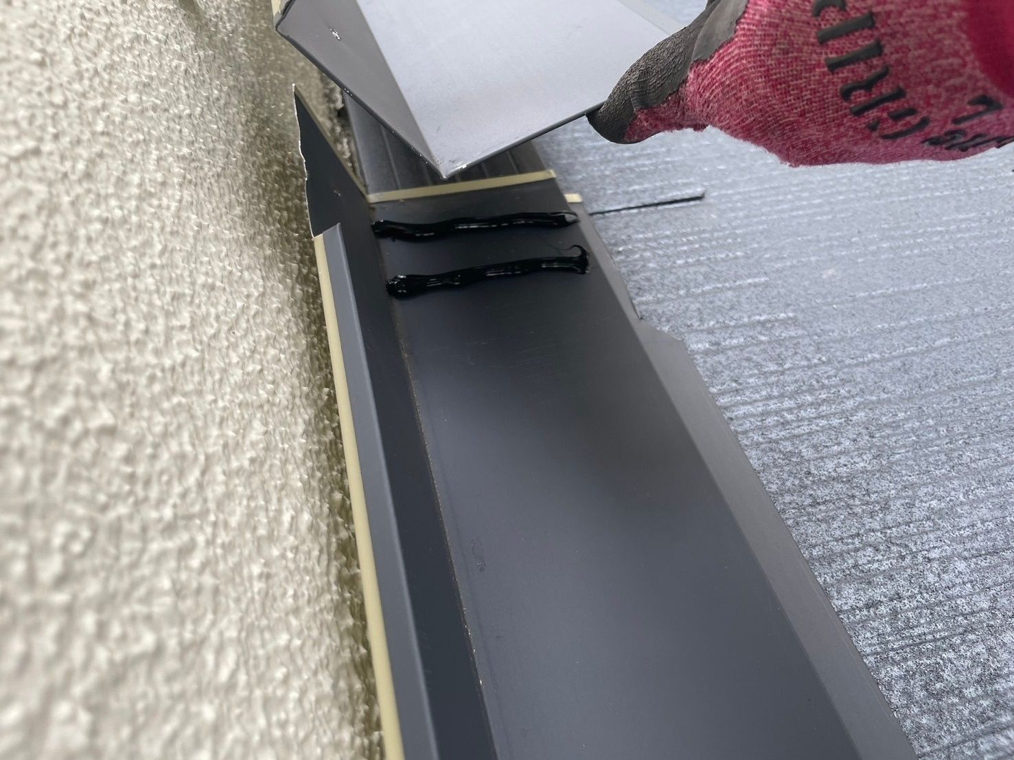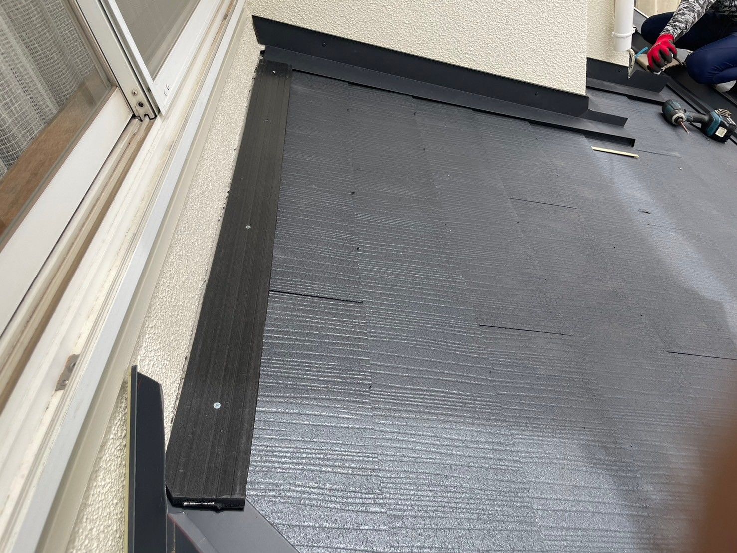 ケイミューのコロニアルグラッサをこの字を描くように丁寧に貼っていきます