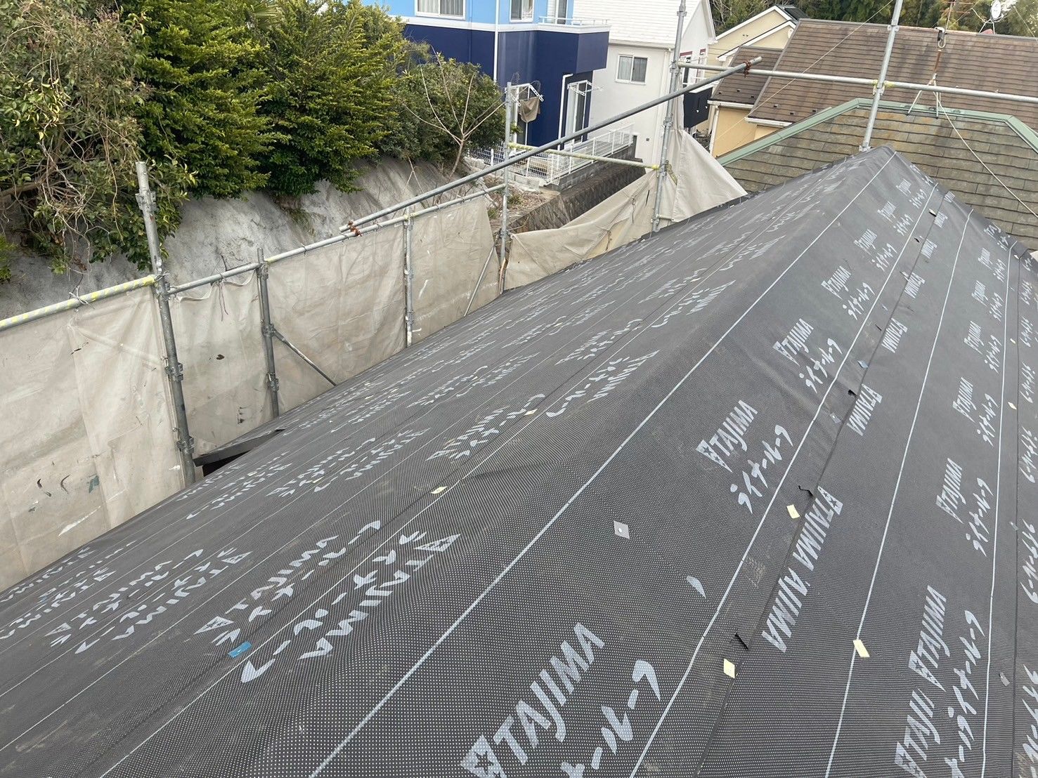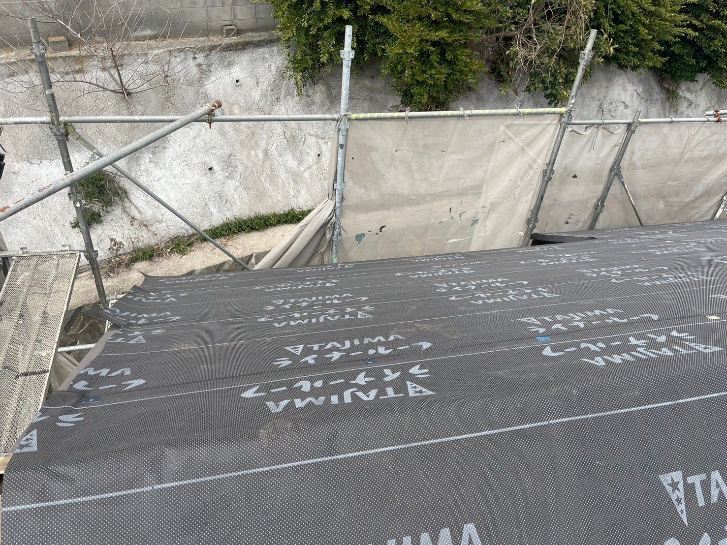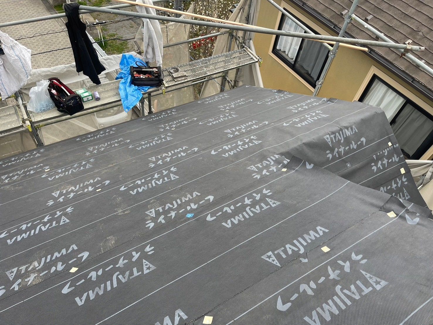 弊社では屋根の耐用年数にあわせ改質アスファルトの最高峰30年の高耐久「ニューライナールーフィング」を使用しております