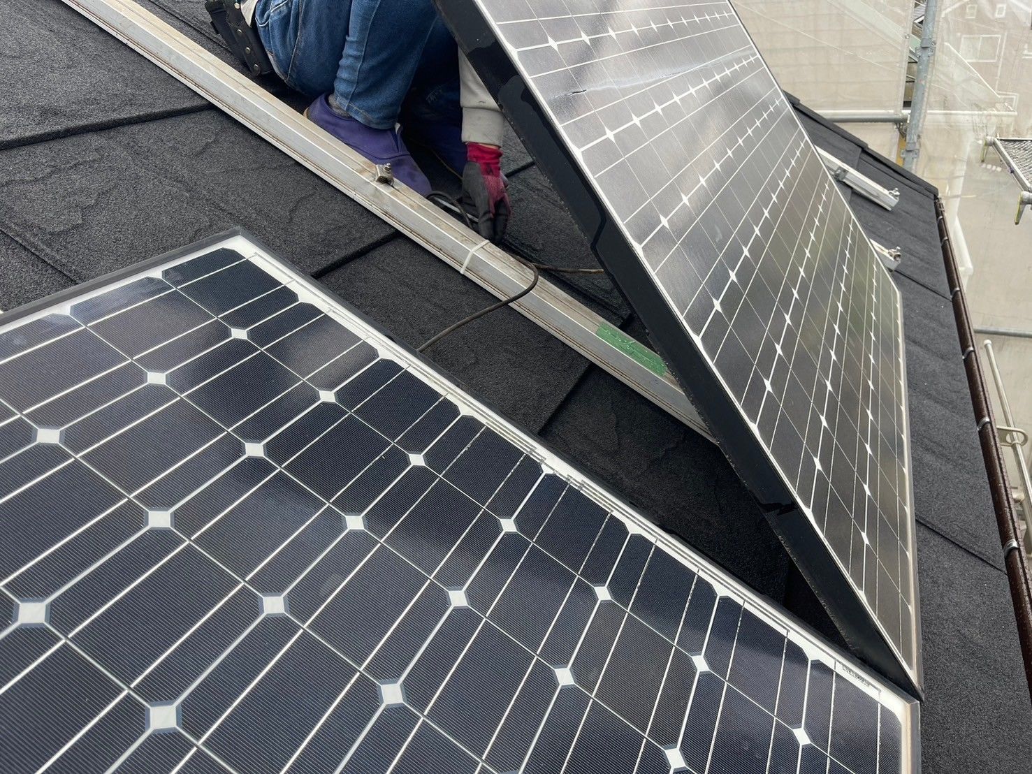 この度のリフォームではソーラーパネルの取付け金具を再利用することで廃材とコストを削減することができました✨